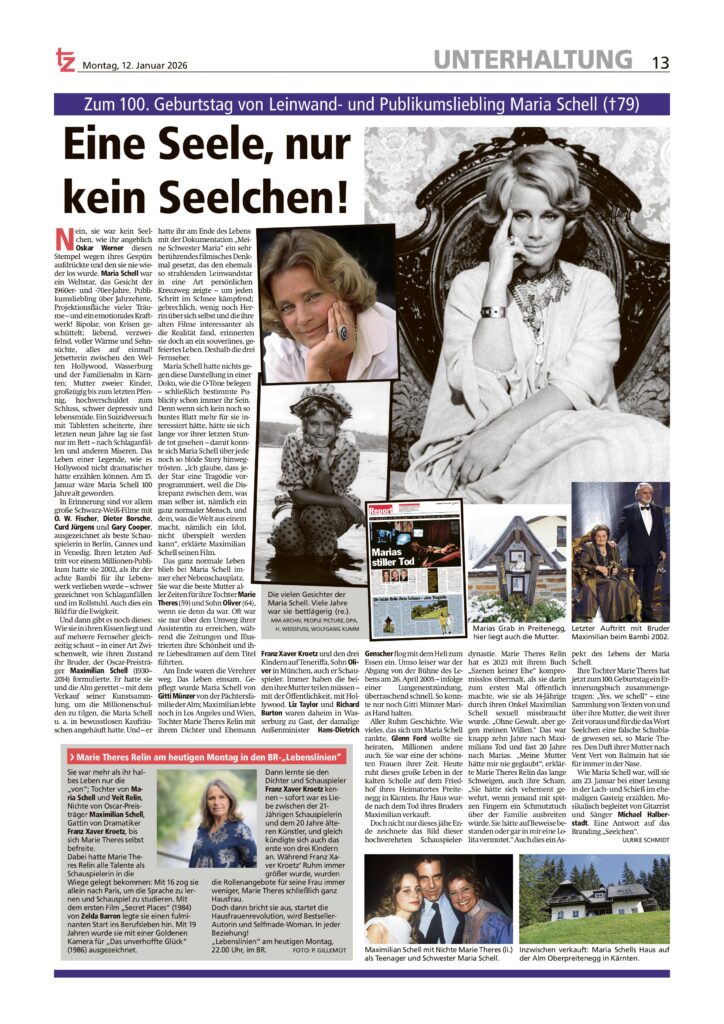 TZ – Eine Seele, nur kein Seelchen! Beitrags-Autor:region18 Beitrag veröffentlicht:12. Januar 2026 Beitrags-Kategorie:News / Presse / Presse 2026 Erschienen in der TZ München am 12.01.2026 © Ulrike Schmidt Das könnte dir auch gefallen Kino Frauen aller Kulturen #2 – EICHENAU – 06.06.2024 1. Juni 2024 Yes, we schell – Neumeister Auktion 18. November 2025 Yes, we schell! – Buch & Hörbuchprobe 2. Dezember 2025